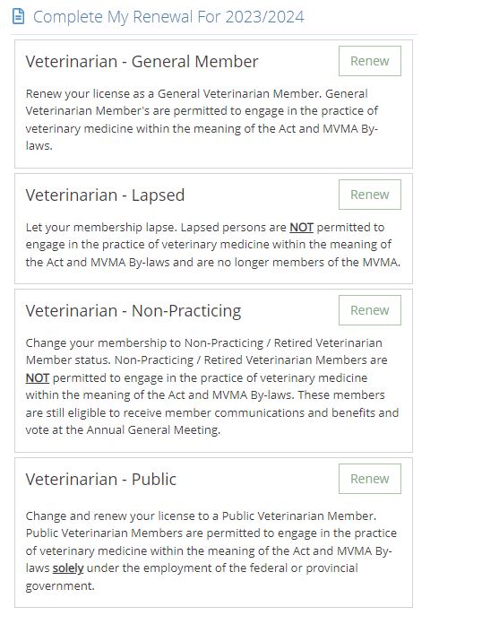 Welcome to the MVMA July 1 to June 30 Veterinary Technologist Membership Renewal!