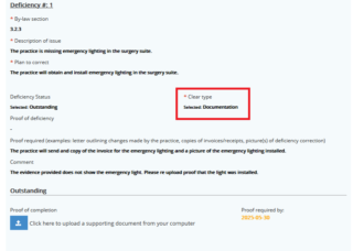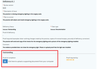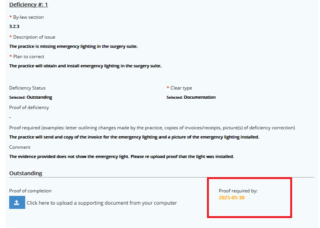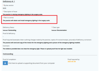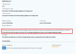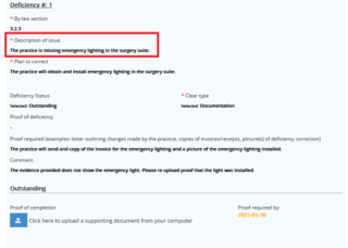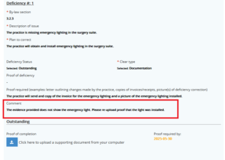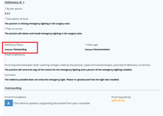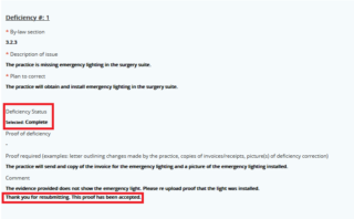If there are outstanding deficiencies, the form will be returned with comments identifying which deficiencies still need attention. For example, one deficiency may be accepted and “complete”, while others may still require additional documentation or clarification before they can be moved to a “complete” status.