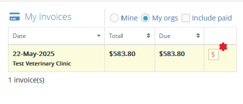 You will return to your main member page, where an inspection invoice will now appear. Click the dollar sign icon to view or pay.